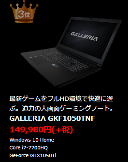 - GTX1050Ti搭載ゲーミングノートPC比較